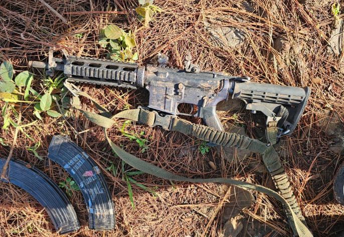 Uruapan, Michoacán, 16 de junio de 2025.- Las secretarías de Seguridad Pública (SSP) y de la Defensa Nacional (Defensa), junto con la Fiscalía General del Estado (FGE) y la Policía Municipal aseguraron dos armas de fuego y tres artefactos explosivos improvisados, mismos que fueron puestos a disposición de la autoridad competente.