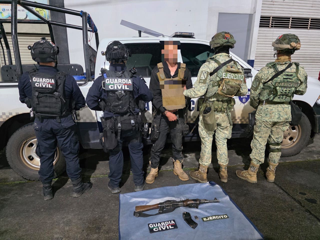 Aunado a ello, en otra acción efectuada en la zona fue detenido un hombre en portación de un arma de fuego calibre 7.62X39 milímetros, cartuchos útiles y un cargador. Por lo anterior, el ahora indiciado y lo asegurado fueron puestos a disposición de la autoridad correspondiente.