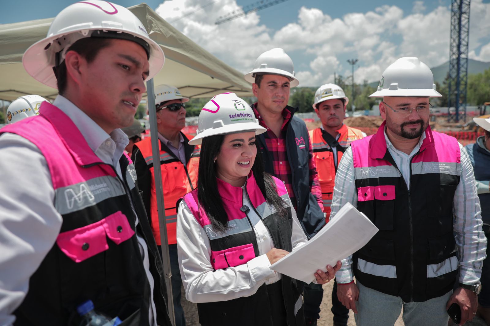 Morelia, Michoacán, 27 de junio de 2025.- La transformación de la movilidad en Michoacán avanza a paso firme, la secretaria de Desarrollo Urbano y Movilidad (Sedum), Gladyz Butanda Macías, supervisó el montaje de la primera de las 41 torres que sostendrán el sistema de teleférico en Morelia.