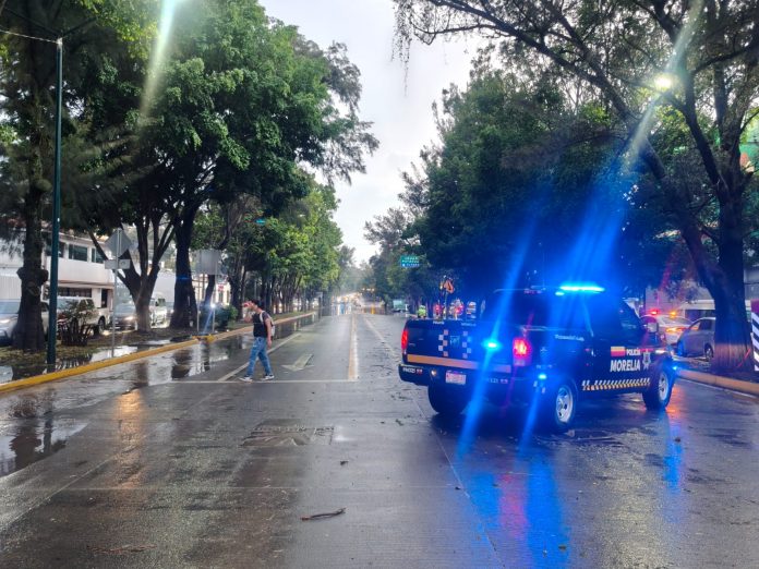 Morelia, Michoacán; 4 de junio de 2025.- El Gobierno de Morelia, a través de la Secretaría de Obras Públicas, en conjunto con Scop del estado, trabajan en la reparación de un socavón que se registró en la lateral de Camelinas, a la altura del Walmart.