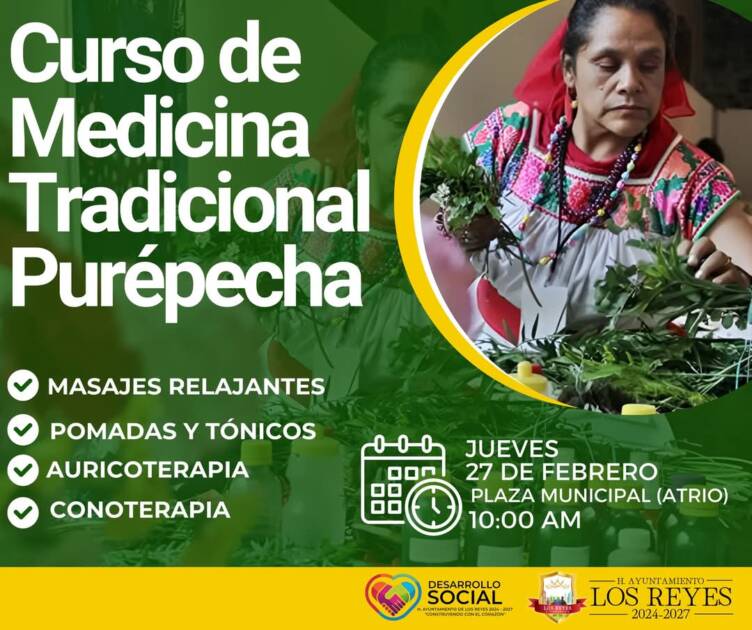 Este curso, que se llevará a cabo el día 27 de febrero en la Plaza Municipal (atrio de la iglesia) a las 10:00 de la mañana, ofrece la oportunidad de aprender sobre las tradiciones y prácticas de la medicina purépecha.