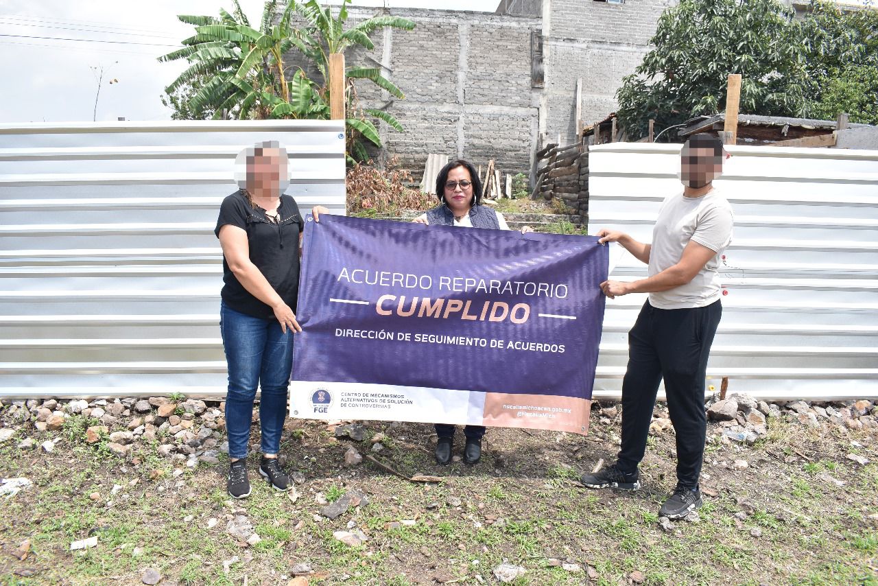 Morelia, Michoacán, a 18 de junio de2025.- La Fiscalía General del Estado de Michoacán (FGE), a través del Centro de Mecanismos Alternativos de Solución de Controversias (CMASC), celebró un acuerdo reparatorio que permitió restituir un inmueble a su legítima propietaria, víctima de despojo en el municipio de Morelia.