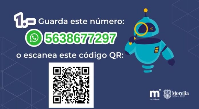 Morelia, Michoacán; 30 de enero de 2025.-Con una nueva opción y a través de una herramienta digital, el Gobierno de Morelia que encabeza el Presidente Municipal, Alfonso Martínez Alcázar sigue innovando y anuncia una nueva modalidad para conocer el adeudo o pagar el predial 2025 mediante el número de WhatsApp 5 638 677 297.
