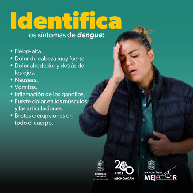 Morelia, Michoacán a 5 de noviembre de 2024.- La Secretaría de Salud de Michoacán (SSM) invita a la población a conocer los síntomas del dengue y a solicitar atención de emergencia, en caso de detectar los signos de alarma.