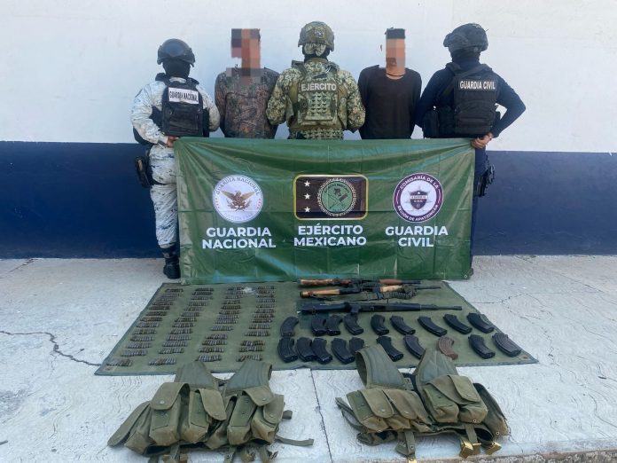 Durante el despliegue de trabajos operativos en la localidad de Puerta Chica de esta demarcación, los efectivos de la Guardia Civil, el Ejército Mexicano y la Guardia Nacional, aseguraron en una zona serrana a los hombres mencionados.