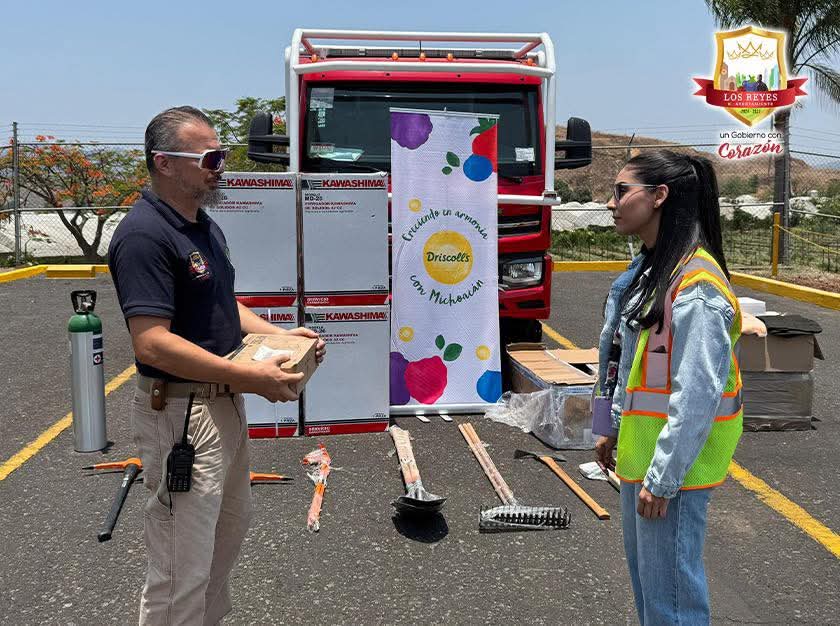 Los Reyes Michoacán a 17 de mayo de 2025.- El Gobierno Municipal de Los Reyes recibió un significativo donativo de Driscoll’s, consistente en herramientas, equipos y uniformes para la Dirección de Protección Civil y Bomberos. Esta entrega es resultado de la destacada gestión de la ingeniera Andrea Mendoza, responsable del Departamento de Sostenibilidad e Innovación Social de Driscoll’s.