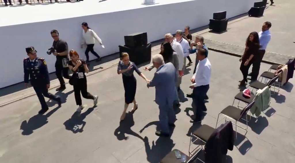 Sheinbaum, iba saludando y abrazando a sus simpatizantes en el recorrido desde la puerta de Palacio Nacional hasta el templete. Ante la “indiferencia” de la “mafia unida” Claudia decidió pasar de largo frente a ellos y solamente saludarlos de lejos en su camino al escenario. Como no se doblegó la mandataria ya que la “mafia unida” calculó que iba a detenerse a saludarlos y no lo hizo, Andy, Luisa María y Ricardo “intentaron” “detener a la presidenta para un saludo más cercano, ella se limitó a “tocarles” los codos a algunos legisladores y seguir su camino. Adán Augusto López siguió unos pasos a la mandataria y “finalmente se rindió”,