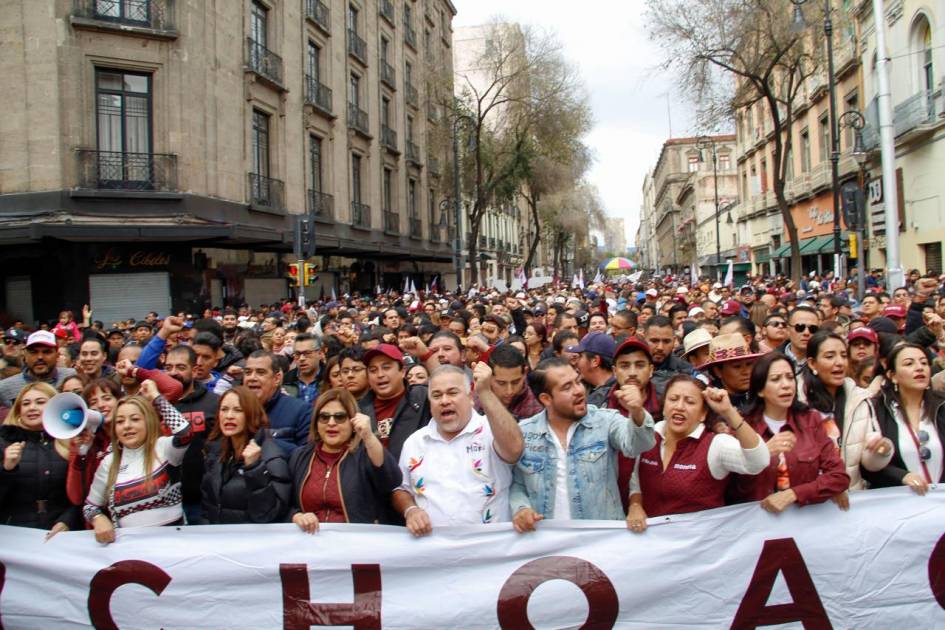 Ciudad de México; 12 de enero del 2025.- El dirigente de Morena en Michoacán, Jesús Mora González, celebró la participación de miles de simpatizantes y militantes michoacanos en el Zócalo de la Ciudad de México para conmemorar los primeros 100 días de gobierno de la presidenta Claudia Sheinbaum.