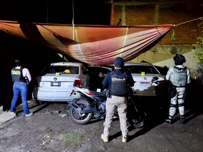 Morelia, Michoacán, 4 de junio de 2025.- En una acción contundente de investigación de de delitos, la Fiscalía General del Estado de Michoacán (FGE), en coordinación con la Guardia Nacional (GN), Guardia Civil (GC) y Policía Morelia (PM), realizó un cateo en la localidad de Téjaro de los Izquierdo, municipio de Tarímbaro, donde logró asegurar 7 vehículos con reporte de robo y alteraciones en sus medios, así como diversos narcóticos.
