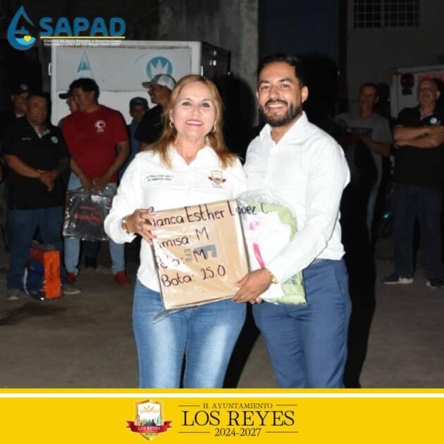 Los Reyes, Michoacán, a 19 de noviembre 2024. – A fin de mejorar las condiciones laborales de los trabajadores del área operativa del Sistema de Agua Potable y Alcantarillado Descentralizado (SAPAD), el Ayuntamiento de Los Reyes llevó a cabo la entrega de nuevos uniformes y calzado.