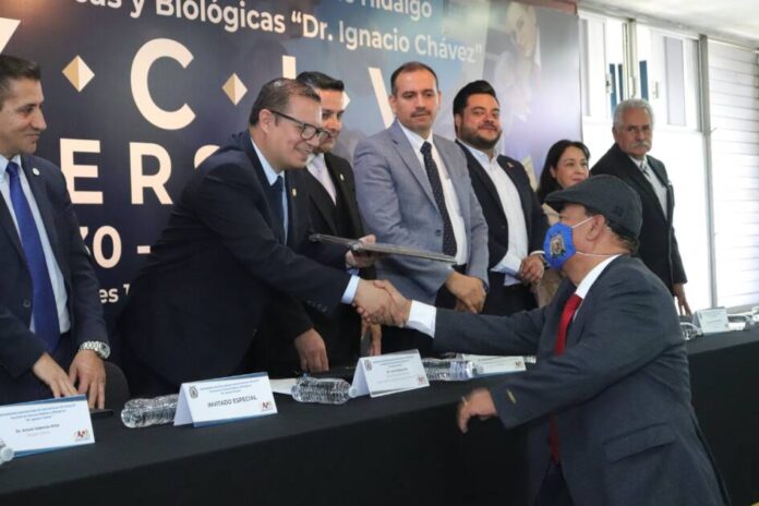Morelia, Michoacán, a 24 de octubre de 2024.- La Facultad de Ciencias Médicas y Biológicas de la Universidad Michoacana de San Nicolás de Hidalgo (UMSNH) ha demostrado su liderazgo a nivel nacional en los resultados del Examen General de Egreso de la Licenciatura en Medicina General (EGEL Plus MEDI) del Centro Nacional de Evaluación para la Educación Superior (CENEVAL), indicó el secretario Académico, Antonio Ramos Paz, al asistir con la representación de la rectora Yarabí Ávila González, a la conmemoración del Día del Médico.