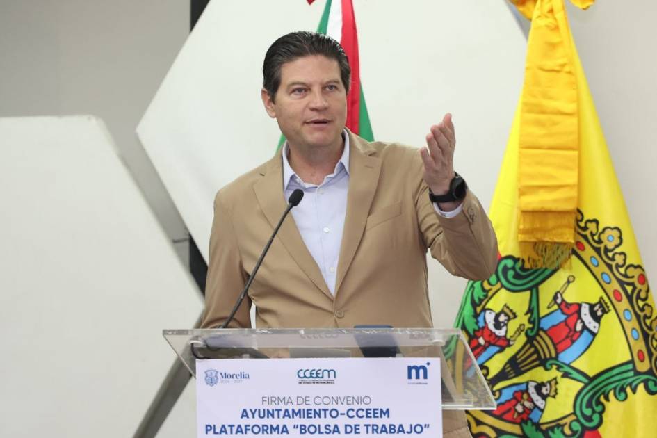 Morelia, Michoacán, a 26 de marzo de 2025.- El Ayuntamiento Municipal, encabezado por Alfonso Martínez Alcázar, renovó el convenio de colaboración con el Consejo Coordinador Empresarial de Michoacán (CCEM), para reforzar la vinculación laboral de las y los buscadores de empleo en Morelia con el sector empresarial y productivo, a través de la plataforma digital de la Secretaría de Fomento Económico municipal (SEFECO).