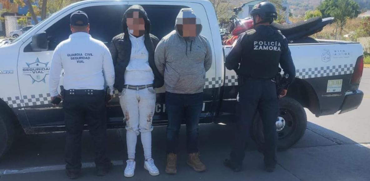 La acción policial se efectuó sobre la colonia Monte Olivo, sitio donde los elementos de la Guardia Civil fueron alertados sobre una posible comisión delictiva; al arribar visualizaron a los dos hombres a bordo de una motocicleta de la marca Italika, quienes al notar la presencia emprendieron la huida del lugar.