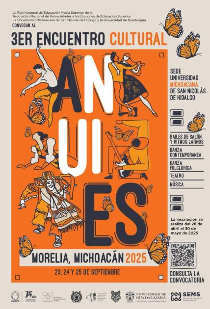 La convocatoria está abierta a todas las instituciones que forman parte de la RNEMS de ANUIES, para participar en este Encuentro Cultural que se realizará los días 23, 24 y 25 de septiembre en la Universidad Michoacana.