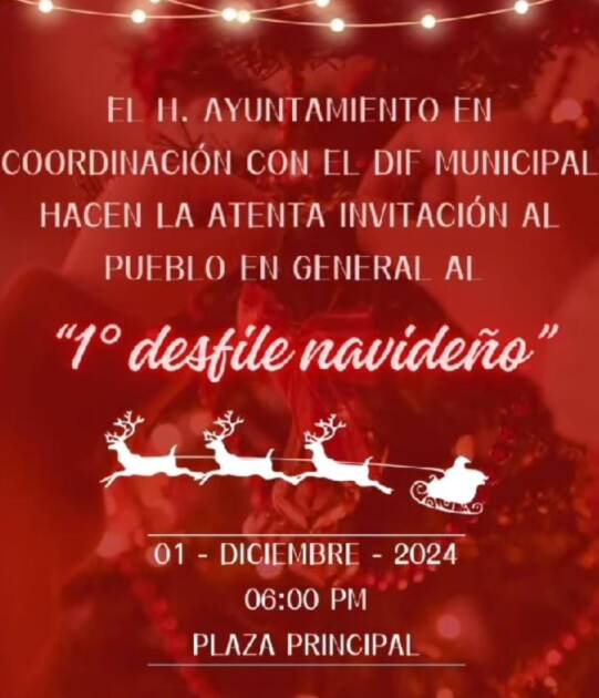 Villa Morelos, Michoacán, a 27 de noviembre de 2024. – A fin de fomentar la convivencia familiar, fortalecer el espíritu navideño y promover el sentido de pertenencia e identidad en la población, el Ayuntamiento de Morelos invita a toda la ciudadanía del municipio al Primer Desfile Navideño.