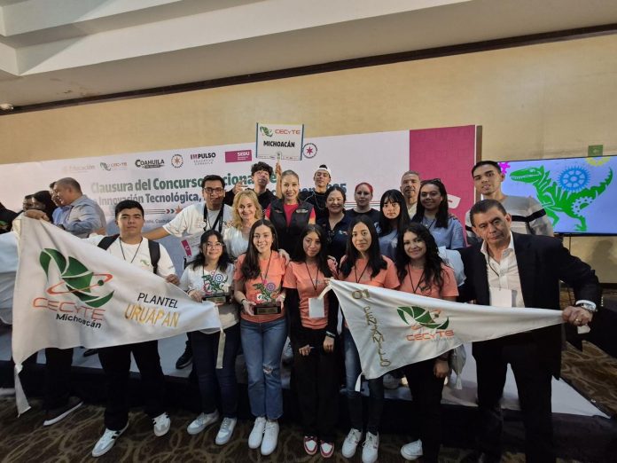 Saltillo, Coahuila, 7 de junio de 2025.- Estudiantes del Colegio de Estudios Científicos y Tecnológicos del Estado de Michoacán (Cecytem) ganaron dos medallas de oro y plata en las categorías de Investigación Tecnológica y Prototipos Informáticos, durante el Encuentro Nacional de Creatividad e Innovación Tecnológica, Robótica y Hackathon 2025, en Saltillo, Coahuila.