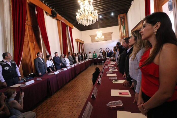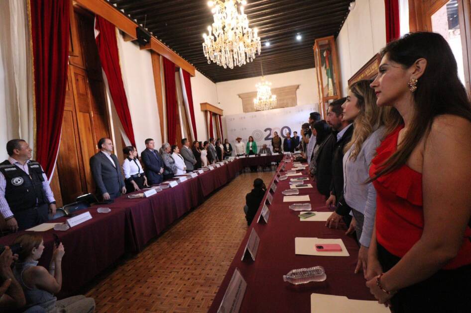 El presidente de la Mesa Directiva del Congreso del Estado, Juan Antonio Magaña de la Mora, acompañado de la presidenta de la Junta de Coordinación Política (JUCOPO), Fabiola Alanís Sámano, las y los coordinadores parlamentarios y las y los diputados integrantes de la 76 Legislatura, fue quien de manera formal instaló todas y cada una de las comisiones y de los comités.