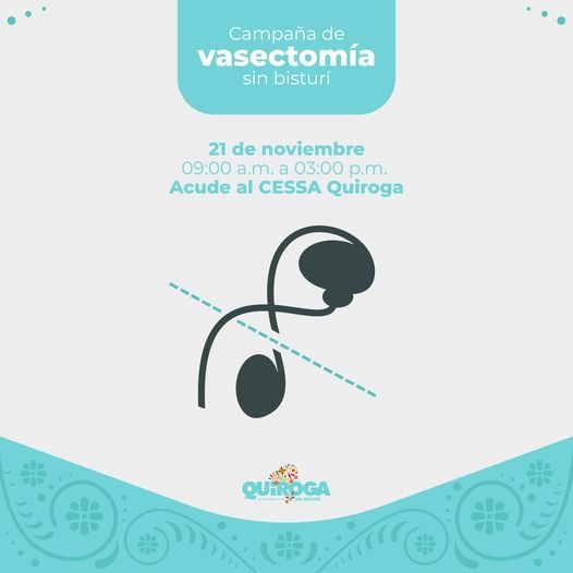 Quiroga, Michoacán, a 14 de noviembre 2024. – El Gobierno de Quiroga anuncia la Campaña de Vasectomía sin Bisturí que se llevará a cabo el próximo 21 de noviembre en el Centro de Salud de Servicios Ampliados (CESSA), con el fin de promover la planificación familiar y contribuir al bienestar de las familias quiroguenses.