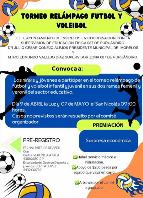 Se realizará el Primer Torneo Relámpago de Voleibol y Fútbol, que se llevará a cabo durante los meses de abril y mayo del presente año