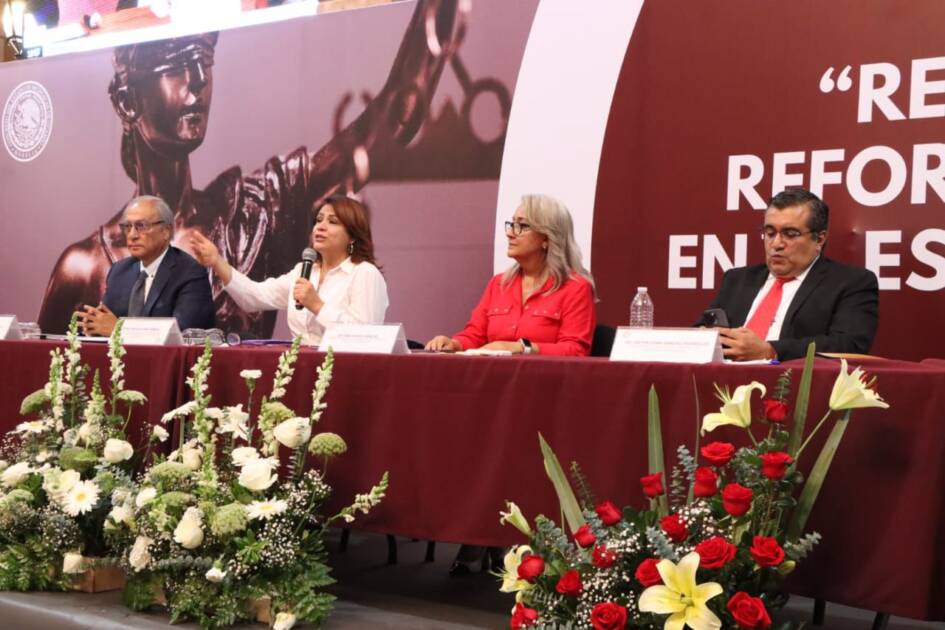 Al dar la bienvenida, la presidenta de la Junta de Coordinación Política (Jucopu), Fabiola Alanís Sámano, destacó la importancia de la Reforma al Poder Judicial, con la que se pretende transformar las instituciones.