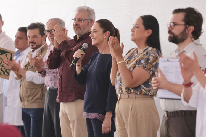 Al recibir a la mandataria federal en el hospital comunitario de Maruata, municipio de Aquila, Ramírez Bedolla, explicó que es de gran beneficio para los adultos mayores y personas con discapacidad que se vaya directamente a las viviendas a brindar atención, a través de las primeras 400 enfermeras y enfermeros que se despliegan en la entidad.