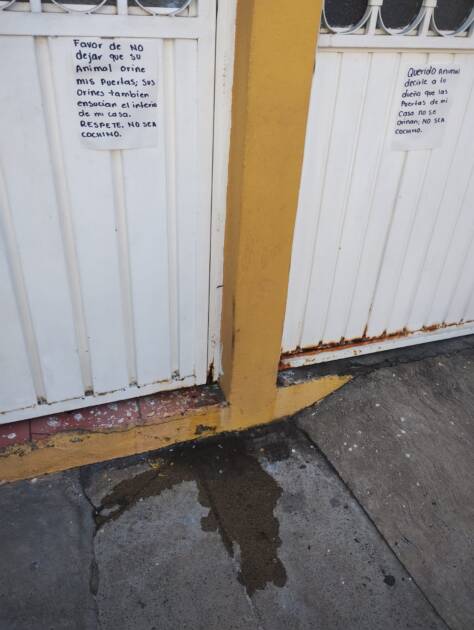 Morelia, Michoacán a 5 de febrero de 2025.- La indignación crece entre los habitantes de la Colonia molino de Parras sobre la calle Colima de Morelia debido a la falta de responsabilidad de algunos dueños de mascotas que permiten que sus perros orinen y defequen en las puertas de las casas sin recoger sus desechos.